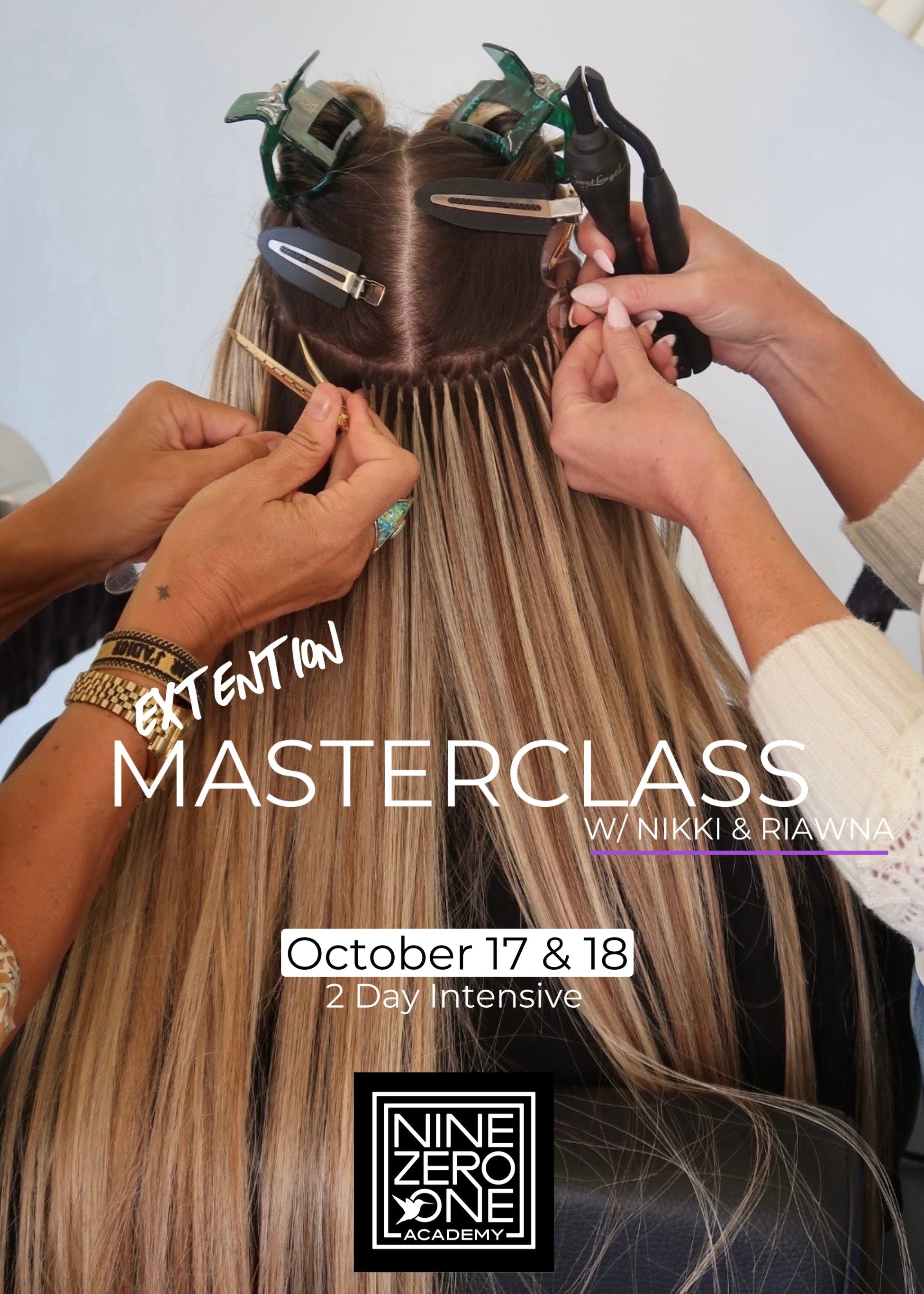 This immersive two-day master class offers an exclusive opportunity to learn directly from Nikki Lee and Riawna Capri, founders of Nine Zero One and pioneers in luxury extension work.